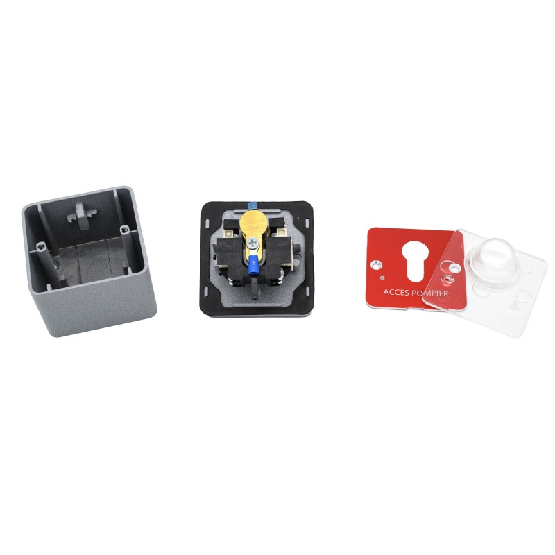 Contacteur pompier STAGNOLI ASM2P à clé à profil TRIANGULAIRE 14mm avec vitre de protection.