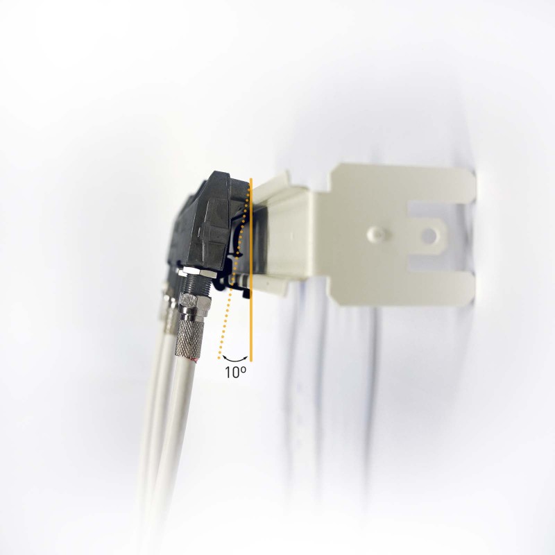 - Enfilage facile du câble, grâce à l'angle d'inclinaison de 10º des connecteurs F par rapport à la paroi d'installation