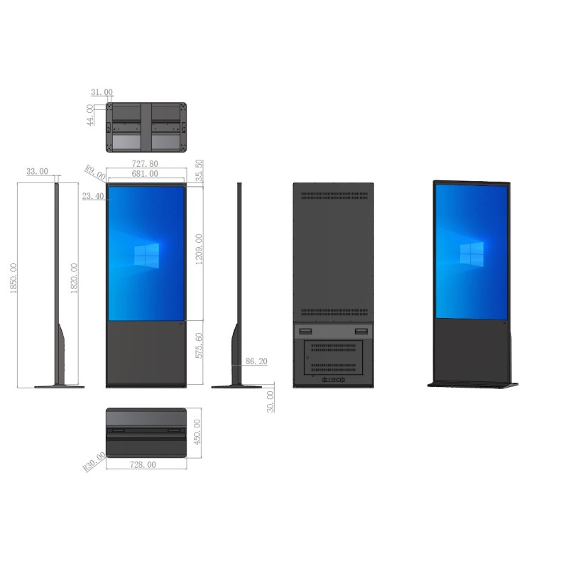Ecran dyn totem - 65' - 320cd/m² - 4K - 9/16 - 16/7