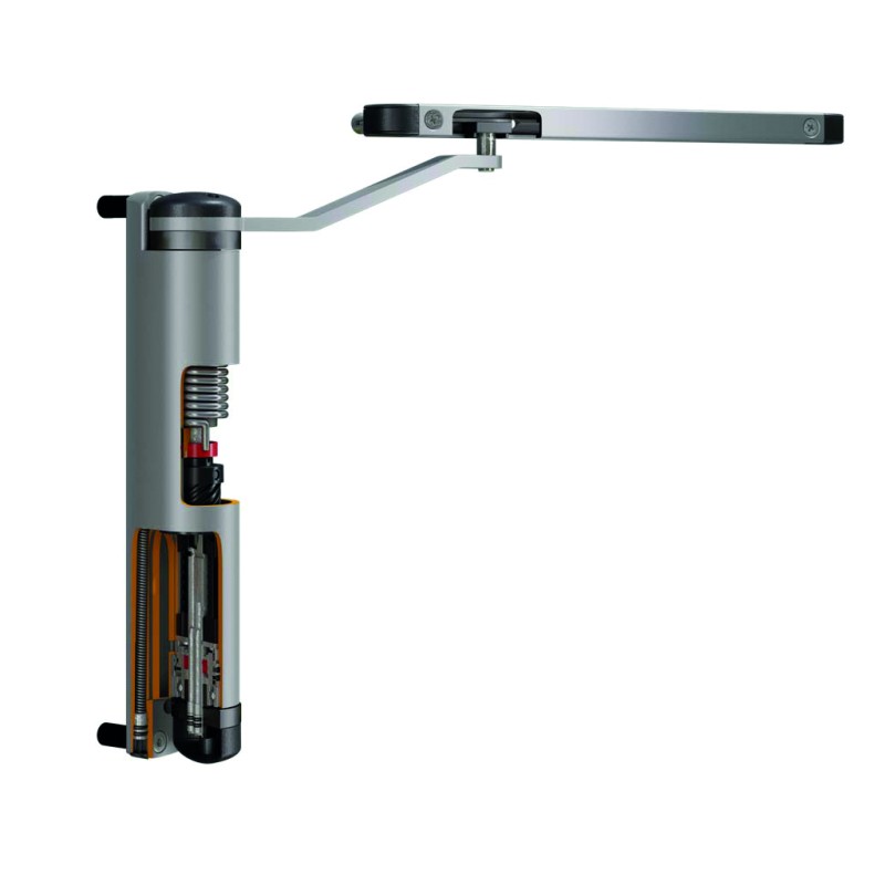 Ferme-portail compact hydraulique réglable pour tout type de portail in Argent